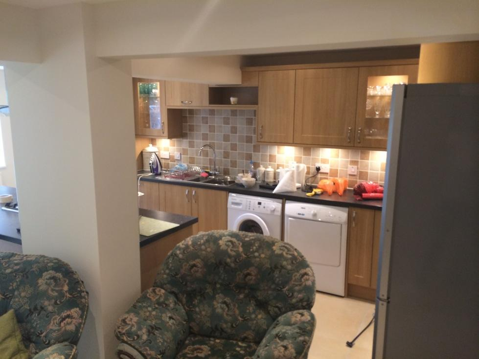 We designed, supplied and installed the kitchen including replacing and moving the boiler, new electrics, all new plasterboard walls and ceiling, plastering and painting the room, introducing and fitting a double door to the living room, converting the space under the staircase into storage with doors and light, fitting new kitchen cabinets with worktops and tiling the walls and floors. The before and after photos are a good example of what can be done to an old and tired property.